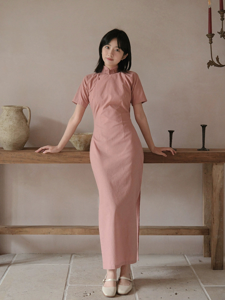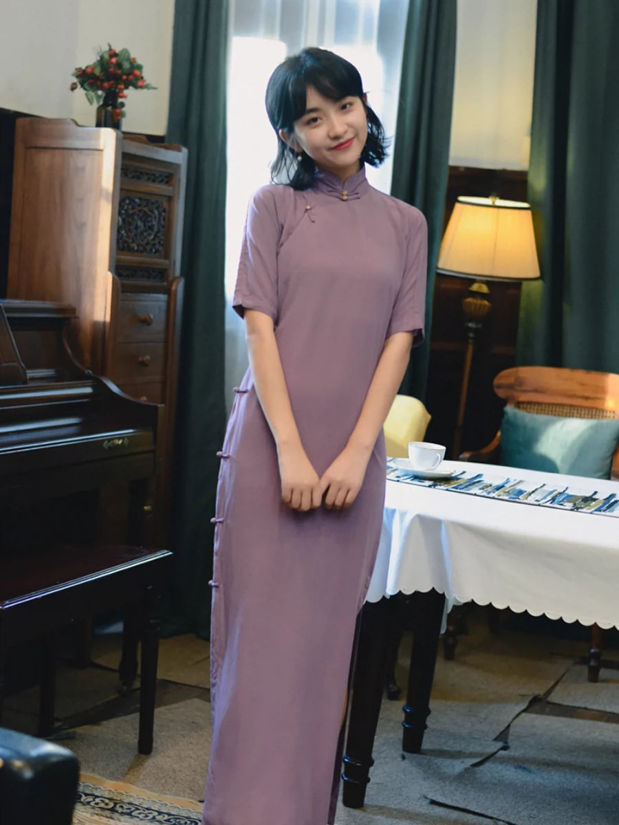 Xinan 西南 Southwestern 1930s Ramie Plant Daily Cap Sleeve Qipao