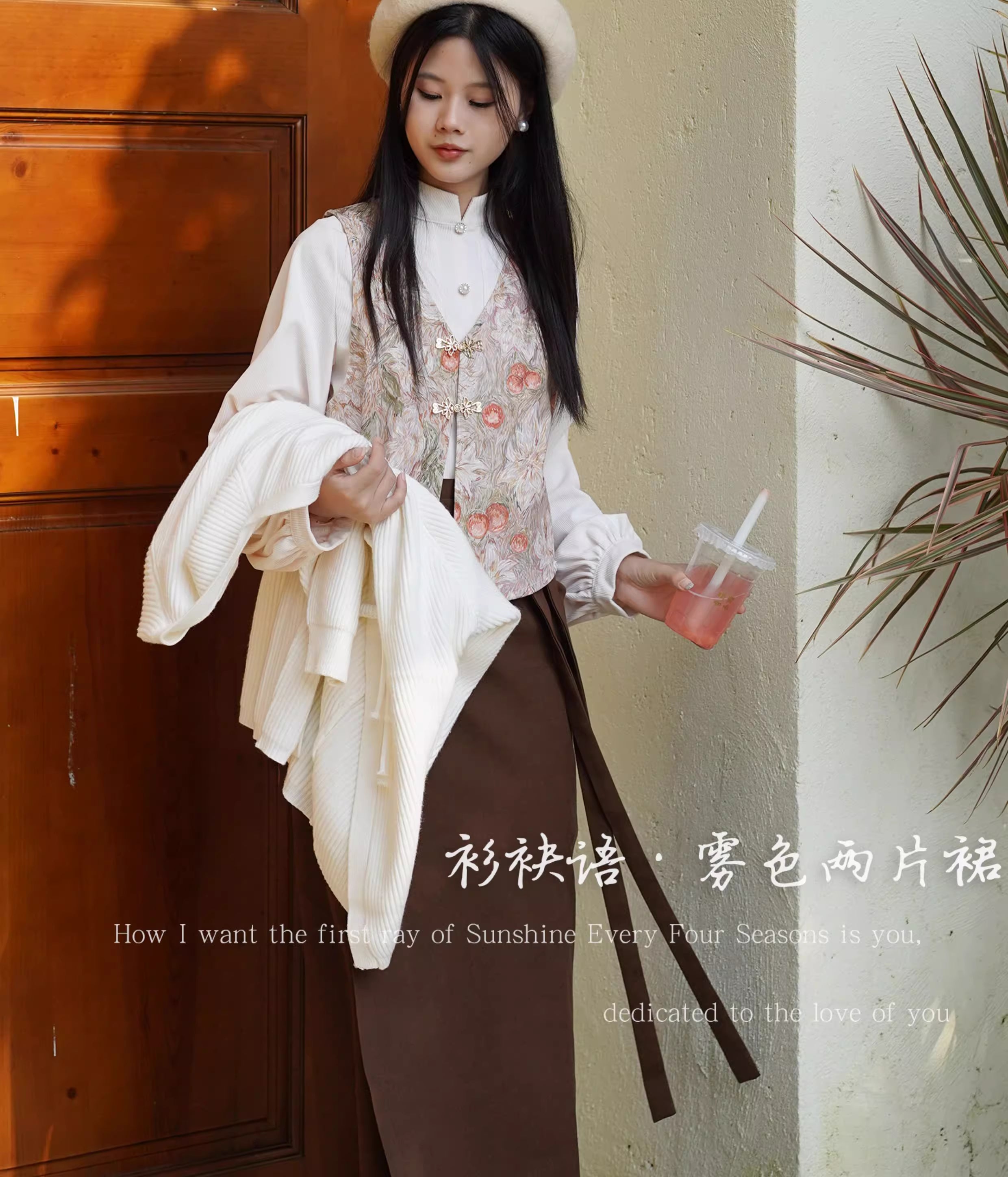 Xiang Cao 香草 Vanilla Modernized Ming Dynasty Summer Bijia Vest Set