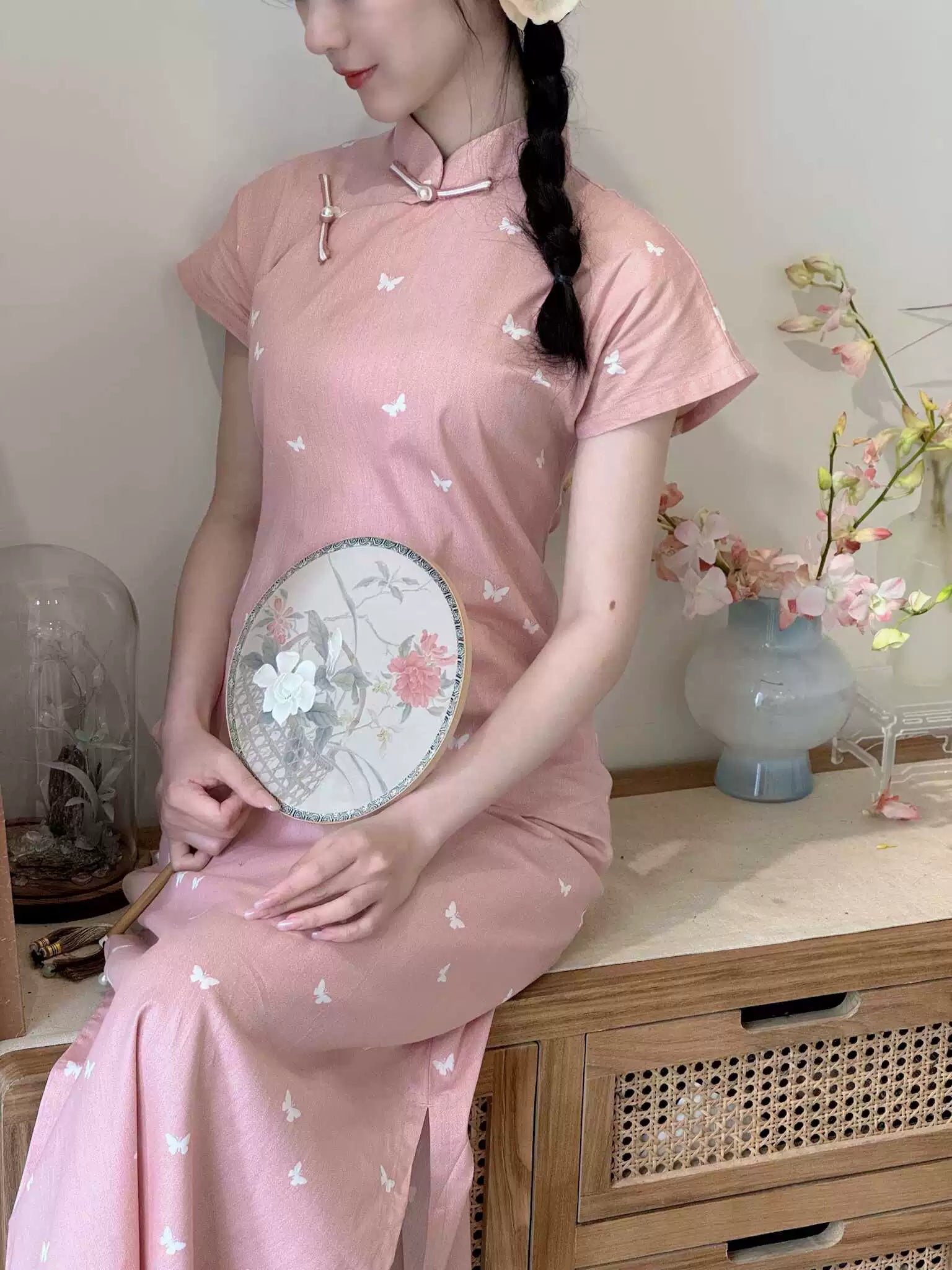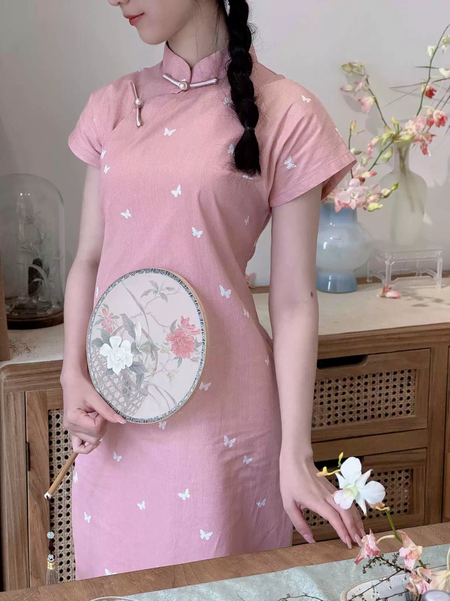 Xiao Jie 小姐 Little Lady Vintage Inspired Butterfly Short Sleeve Qipao