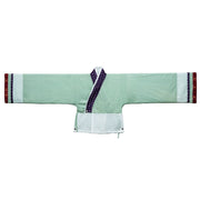 The Poqun 破裙, or "broken skirt" isn't actually broken! It refers to the many strips of fabric pieced together to create the signature striped patterns. The Poqun in this set is uniquely fully reversible with one patterned side and one plain.