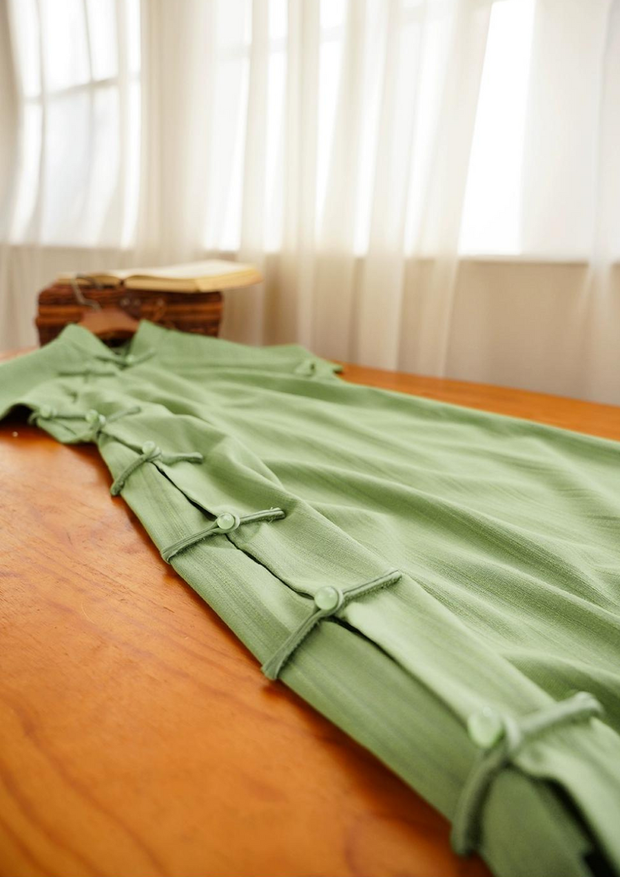 Made from a cotton and linen blend, you will stay cool and comfortable even during the warmest days. Whether you're enjoying an afternoon coffee run or grabbing lunch with friends, the Jue Lei 蕨类 Fern Qipao is sure to give you an elegant aura.