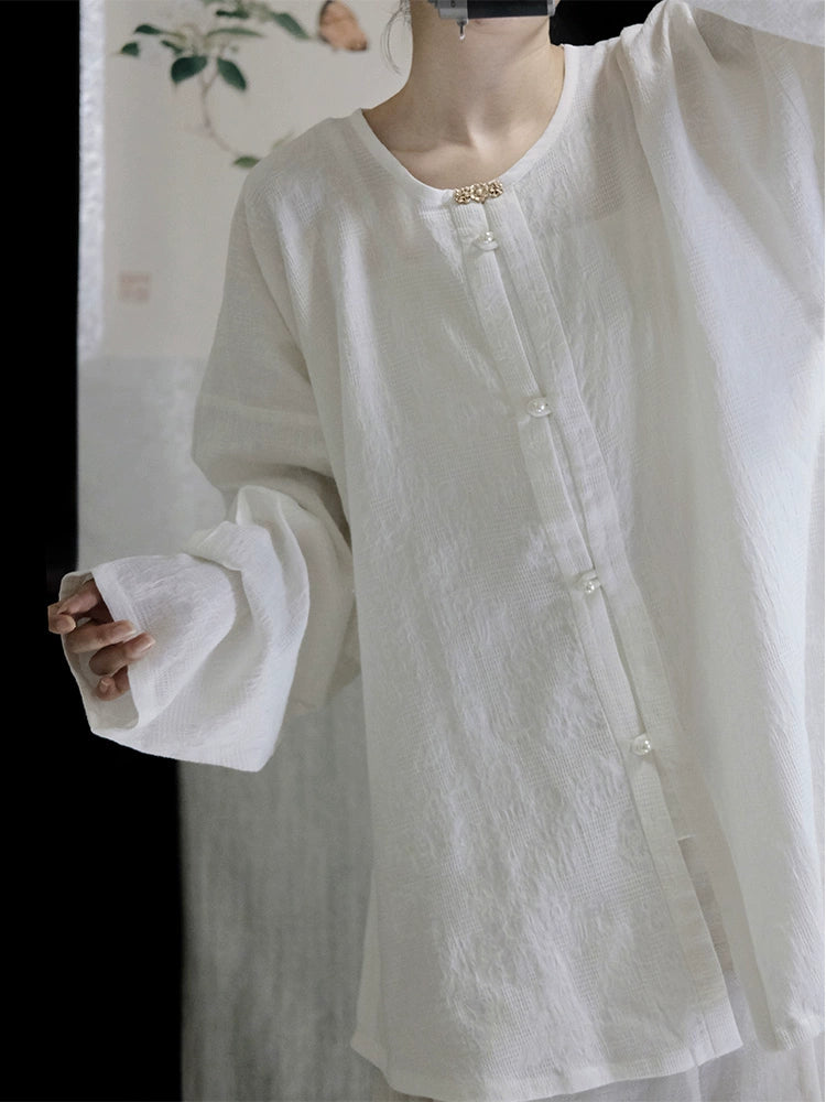 Pear Blossom 梨花 Modernized Ming Dynasty Yuanling Round Collar Top