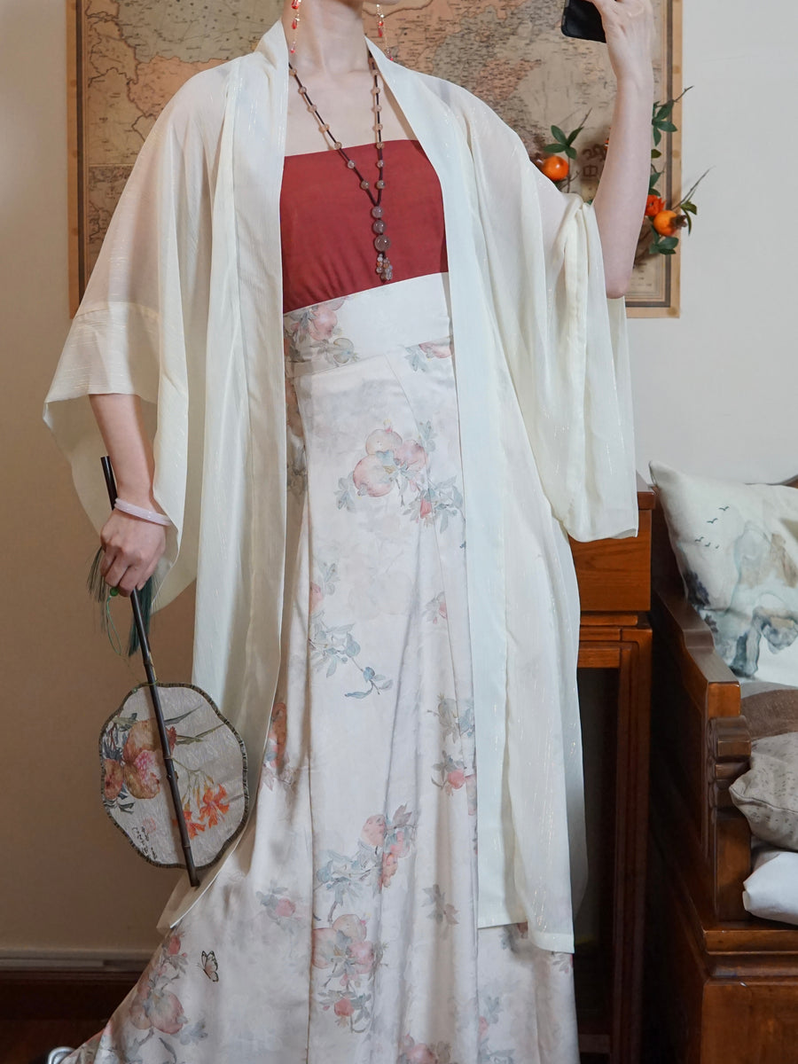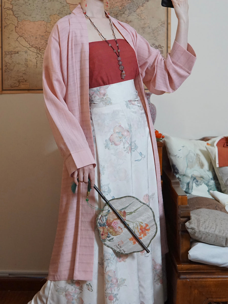 An adorable spring/summer pomegranate print Poqun 破裙 ("broken skirt"), referring to the many panels needed to create one large skirt. This construction creates a flattering A-line shape!