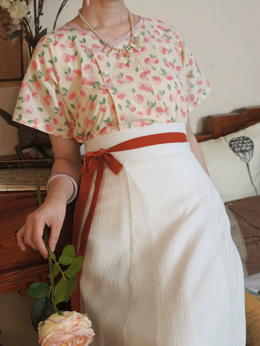 Taozi Guodong 桃子果冻 Peach Jelly Modernized Tang Dynasty Beizi Banbi Top & Poqun Skirt Set
