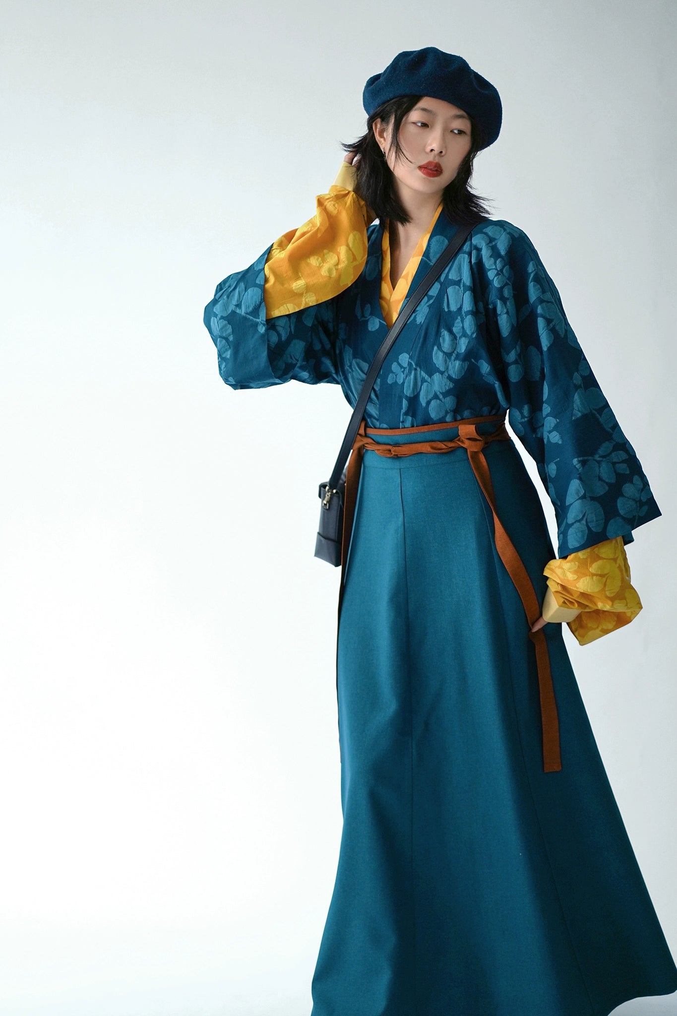 Lili Su 栗栗苏 Chestnut Candy Modern Weijin Quling Curved Collar Jacket & Midi Skirt Set