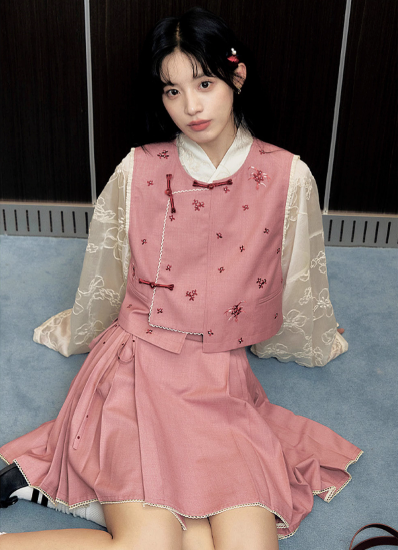 Hua Shuying 花疏影 Scattered Flowers Modern Wei Ming Jiaoling Ru Top & Mini Mamian Skirt Set