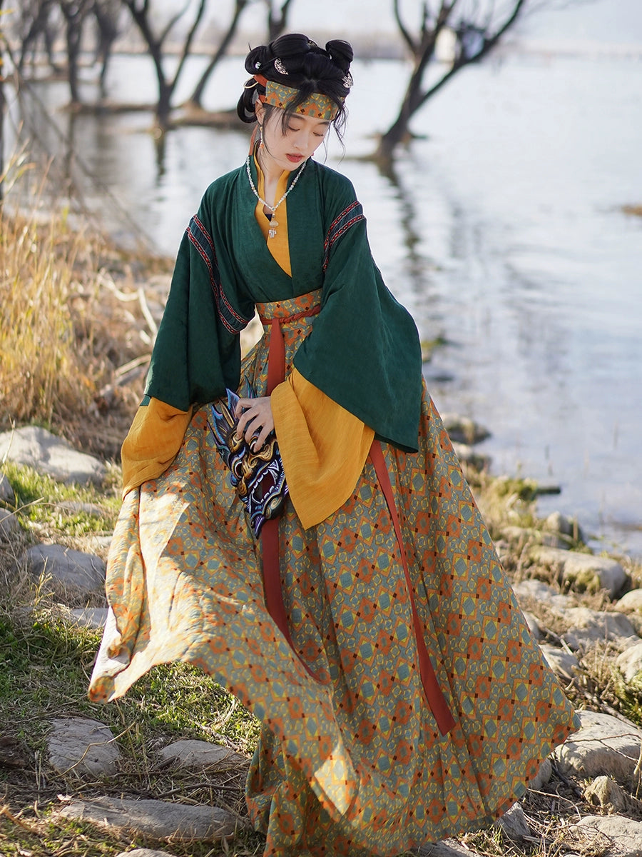 Cai Ju 采菊 Picking Chrysanthemums Jin Dynasty Unisex Ruqun Set