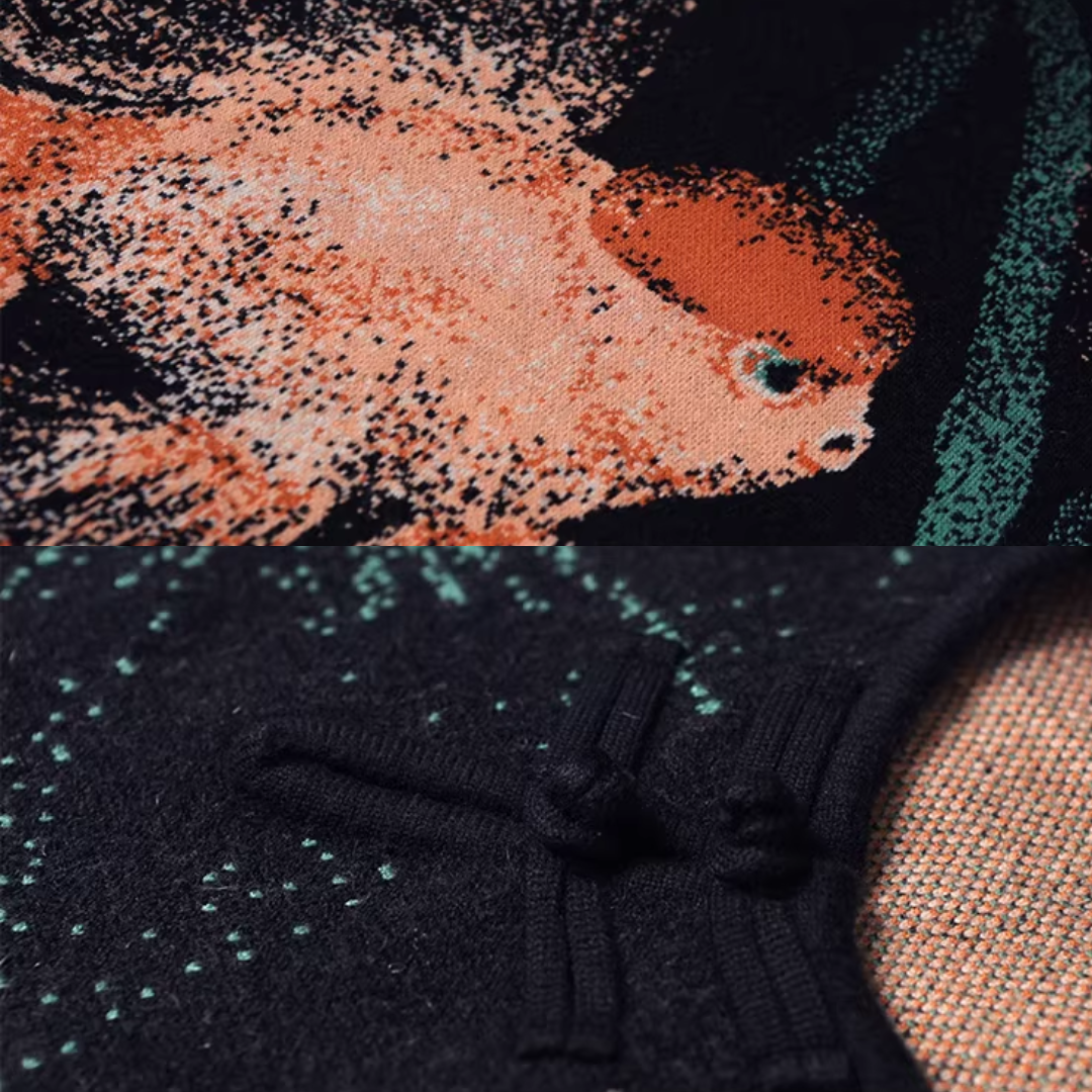 Pair each piece with different tops, pants, or even over dresses! Versatile knitwear that adds a touch of fishy charm to any ensemble.
