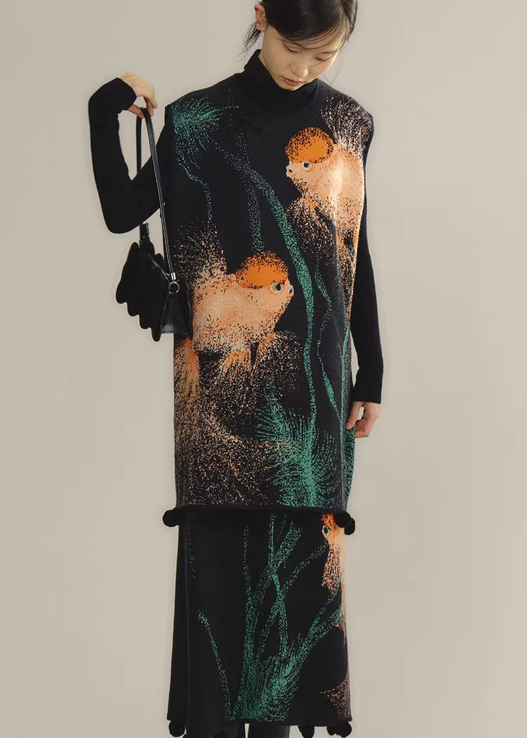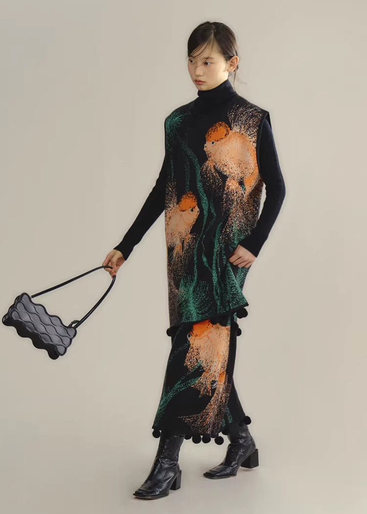 Zhuanyun Xiaoli 转运小鲤 Little Lucky Carp New Chinese Style Knit Top & Skirt Set