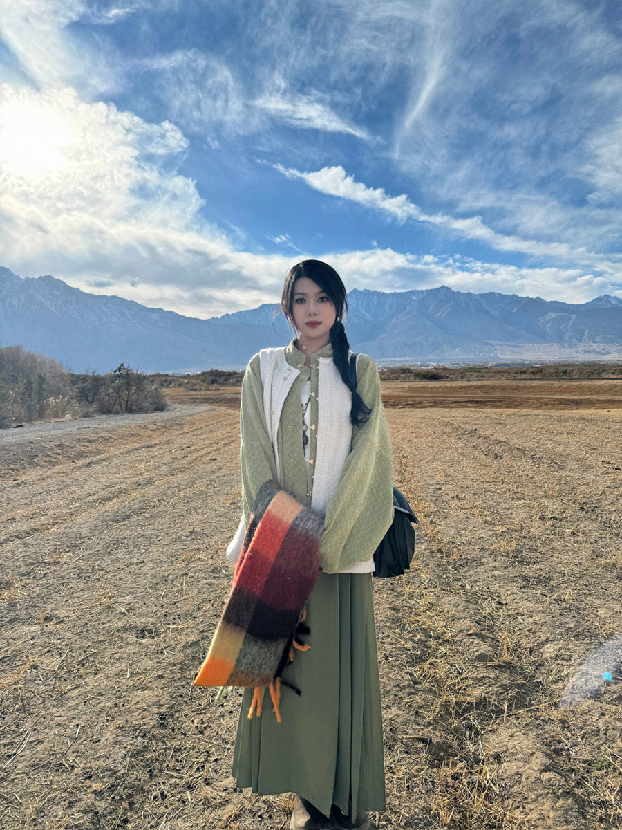 Haiyan 海盐 Sea Salt Modernized Ming Plus Size Knit Standing Collar Top & Easy Wear Mamian Skirt