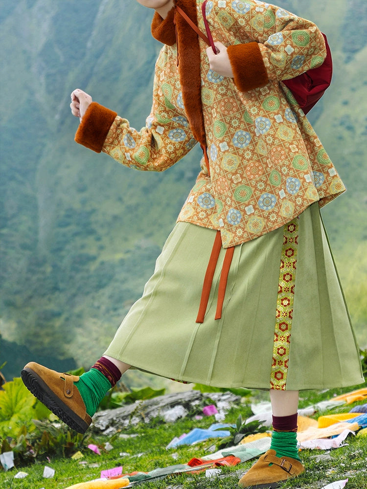 Milk Chocolate 牛奶巧克力 Modernized Ming Plus Size Yuanling Ao Jacket & Midi Mamian Skirt Set