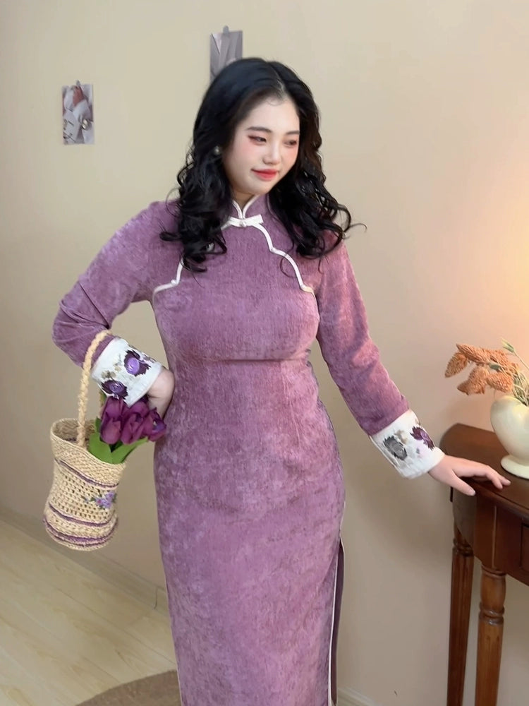 Qiezi 茄子 Aubergine 1920s Inspired Plus Size Long Sleeve Winter Qipao