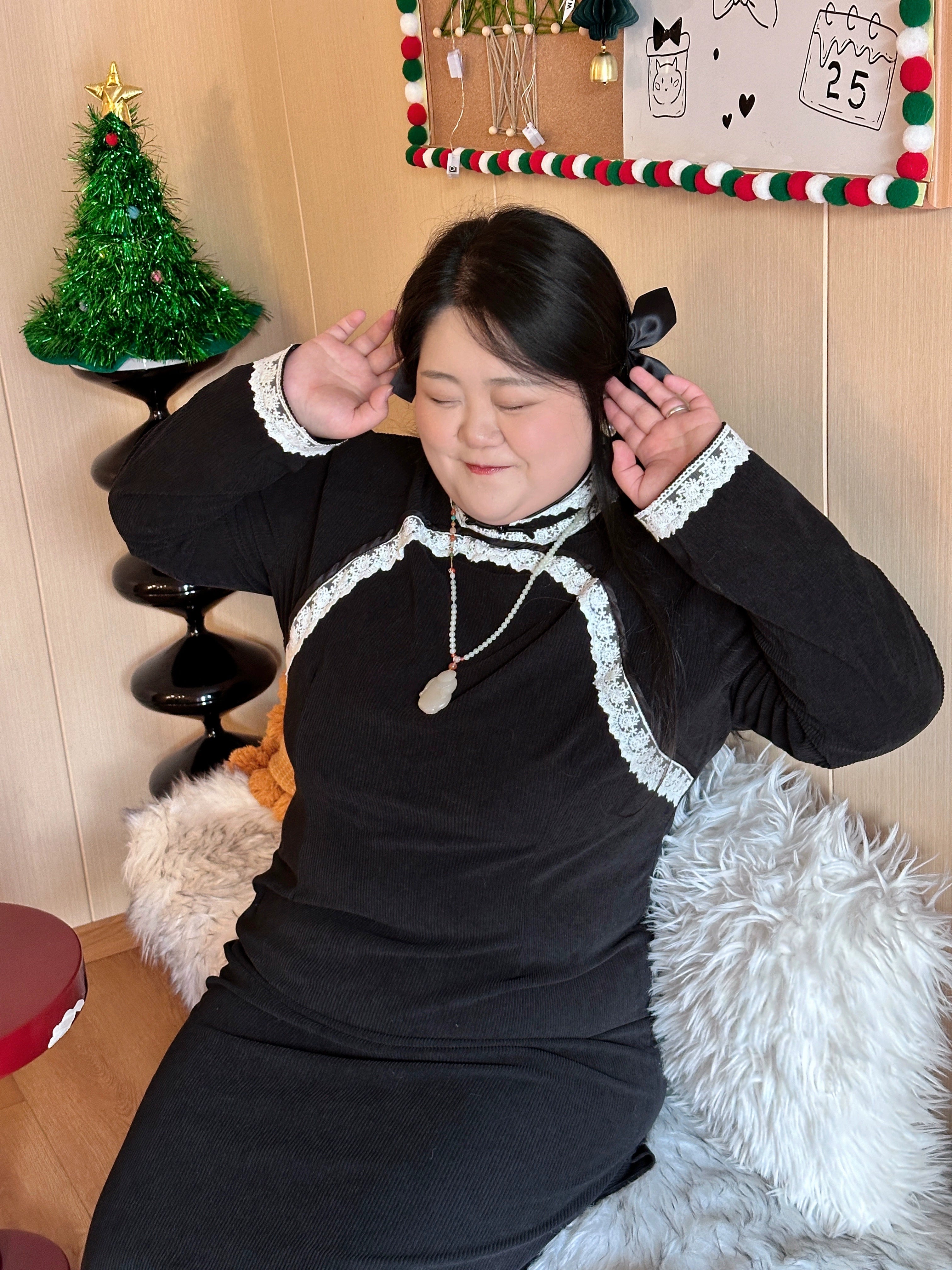 Bao Fufu 抱富富 Holding Fortune Plus Size Long Sleeve Lace Qipao