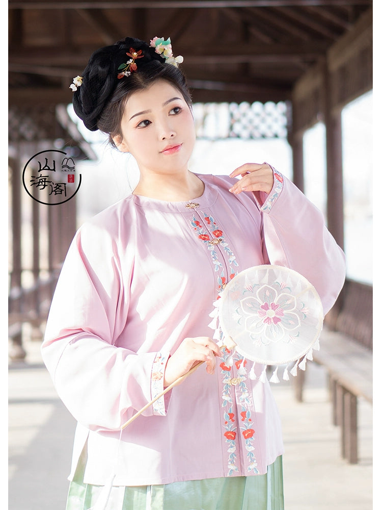 Shancha Hua 山茶花 Camellia Wreath Early Ming Plus Size Embroidered Jiaoling Yuanling Ao Shirt