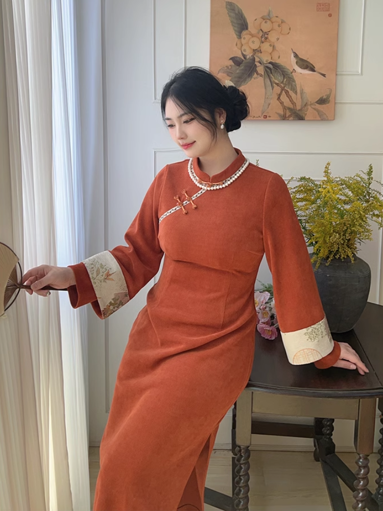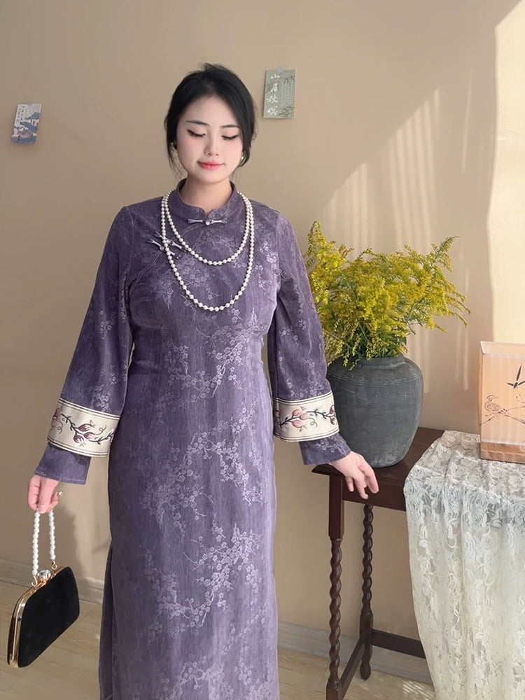 Qiezi 茄子 Aubergine 1920s Inspired Plus Size Long Sleeve Winter Qipao