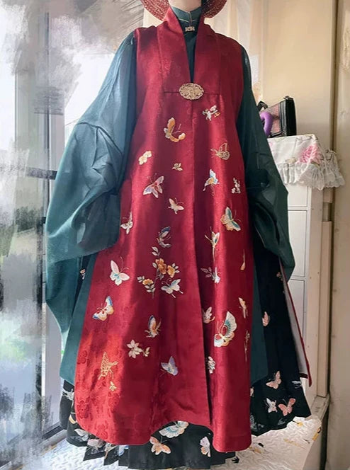 Butterfly Seeking Wind 蝶寻风序 Modernized Ming Duijin Pi Ao Coat & Mamian Skirt Set