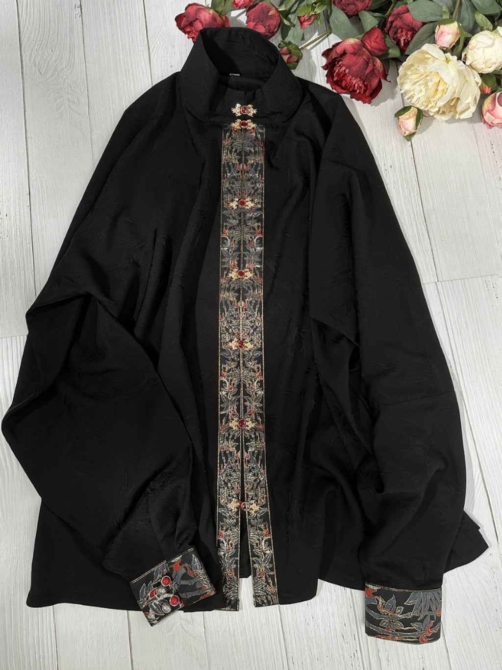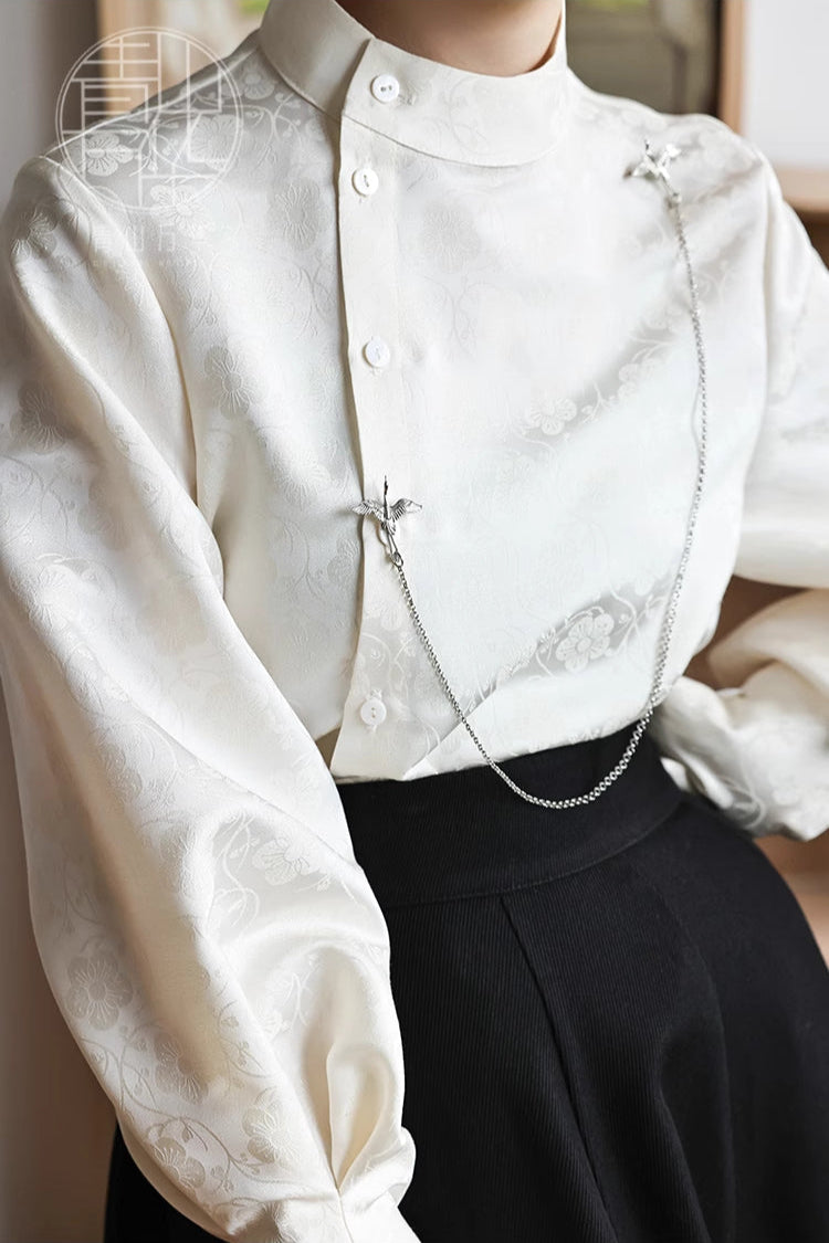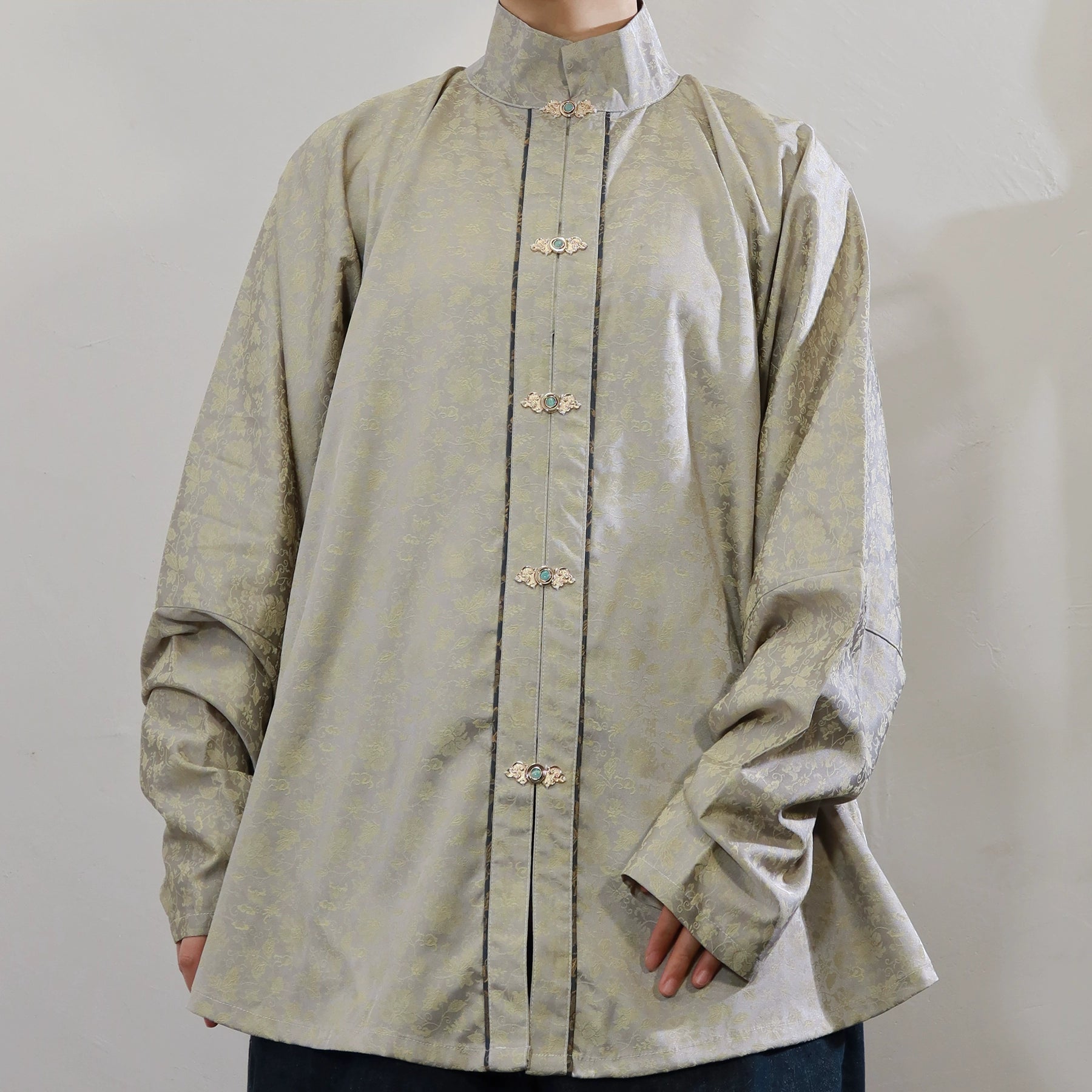 Tong Jin 铜镜 Bronze Mirror Men's & Unisex Ming Dynasty Jacquard Liling Standing Collar Top