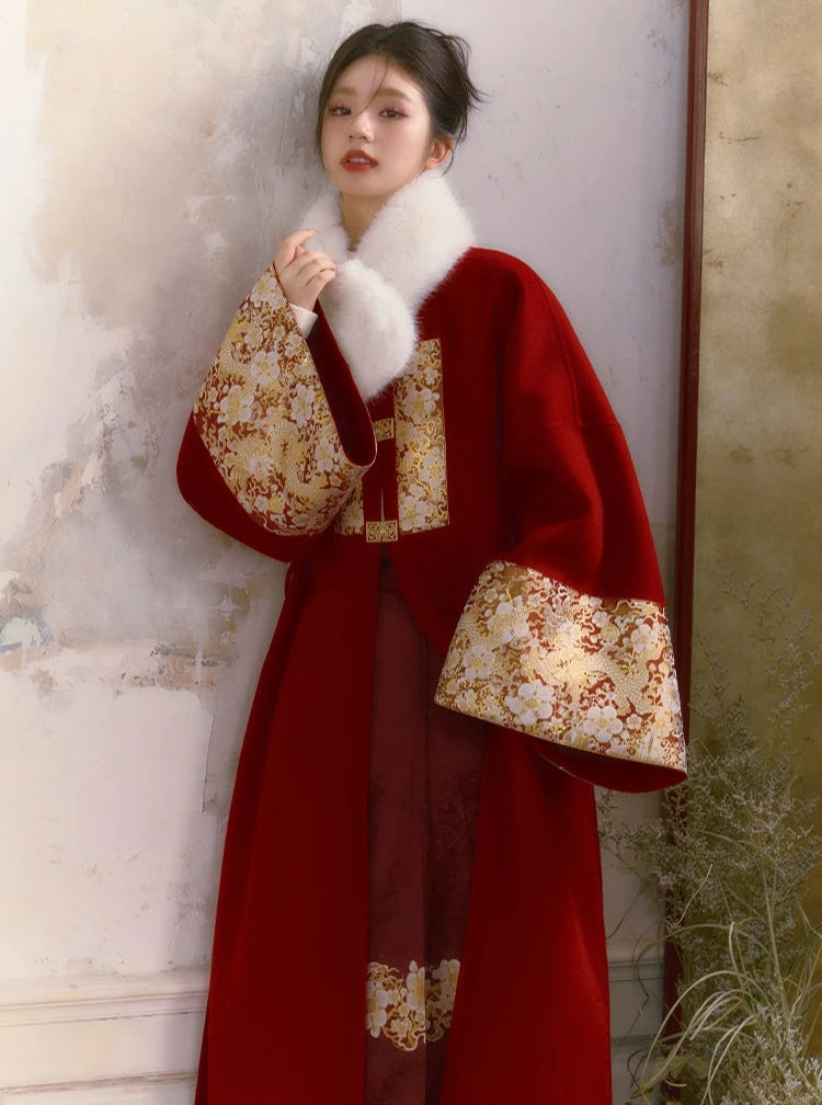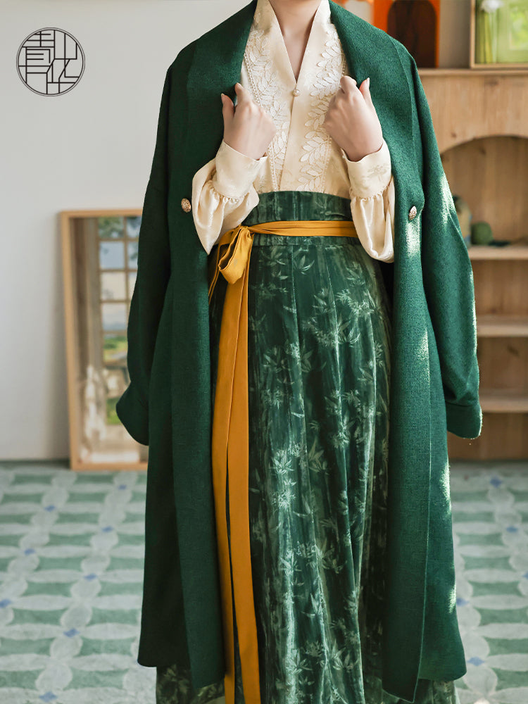 Yanhuo Nian Nian 烟火年年 Yearly Fireworks Modernized Ming Brocade Buzi Pure Wool Coat & Mamian Skirt