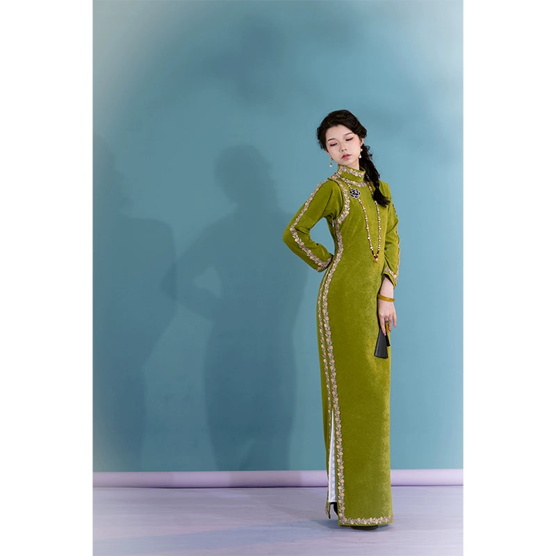 Ling Nan 岭南 Southern Ridge 1930s Knit Long Sleeve Winter Qipao