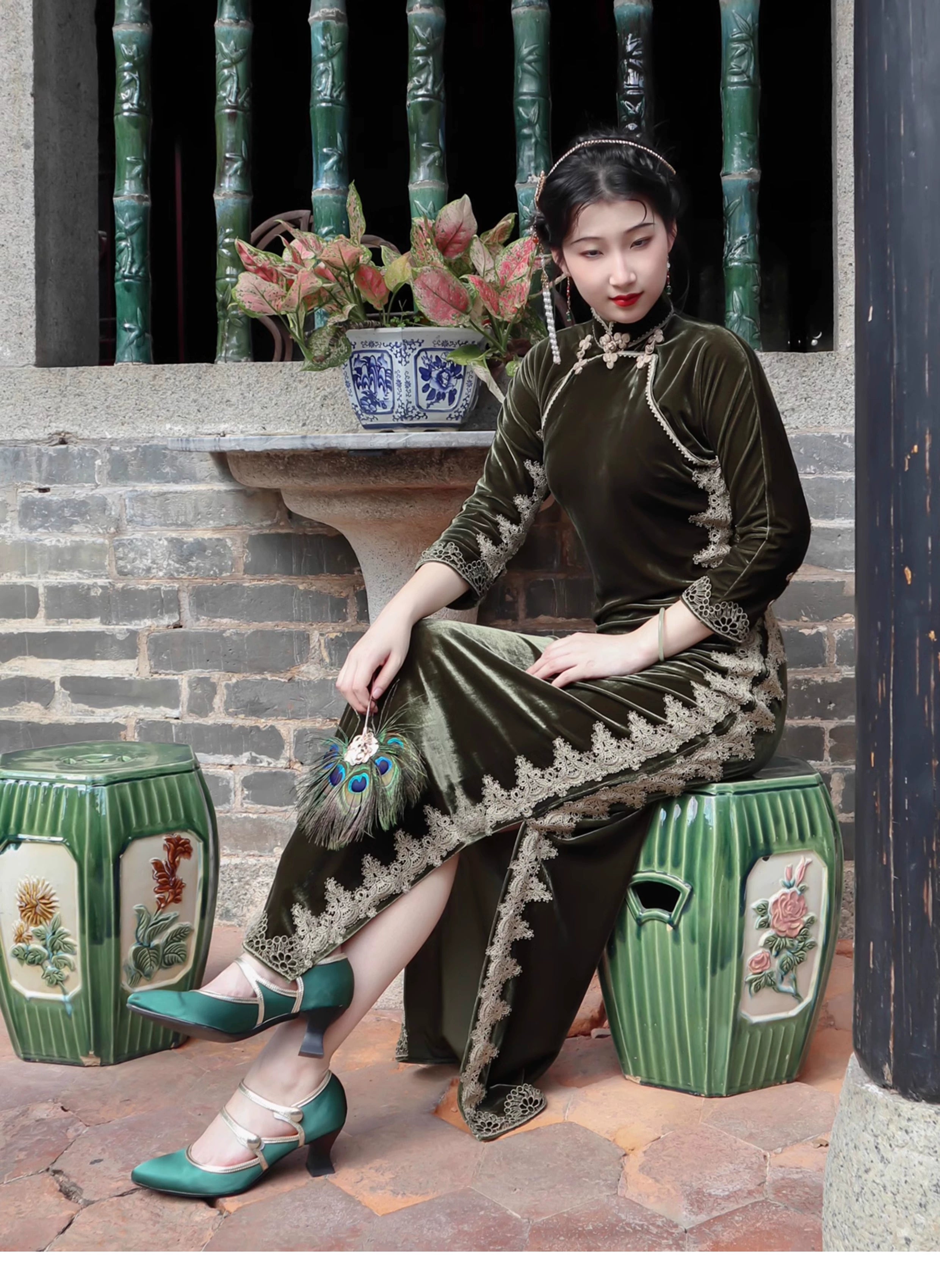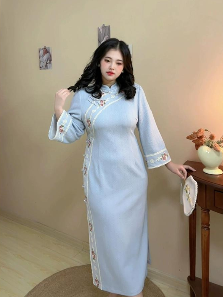 Bao Fufu 抱富富 Holding Fortune Plus Size Long Sleeve Lace Qipao