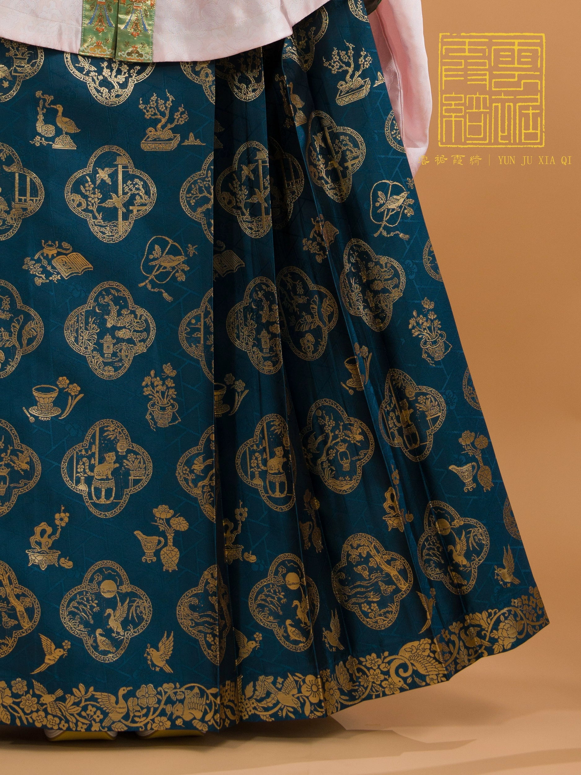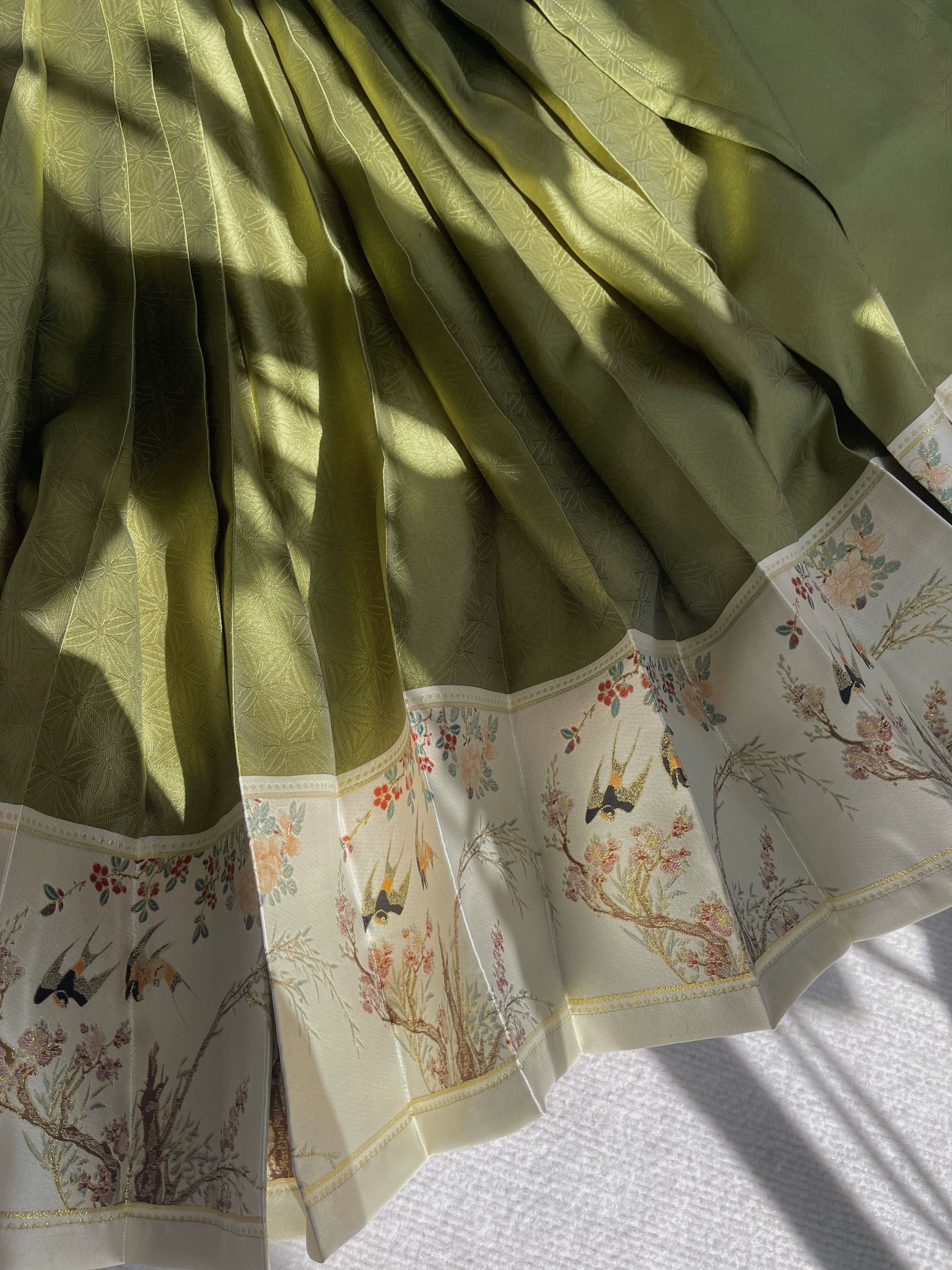 Holding the Moon 上揽月 Olive Green Weijin Tang 10 Panel Poqun Skirt