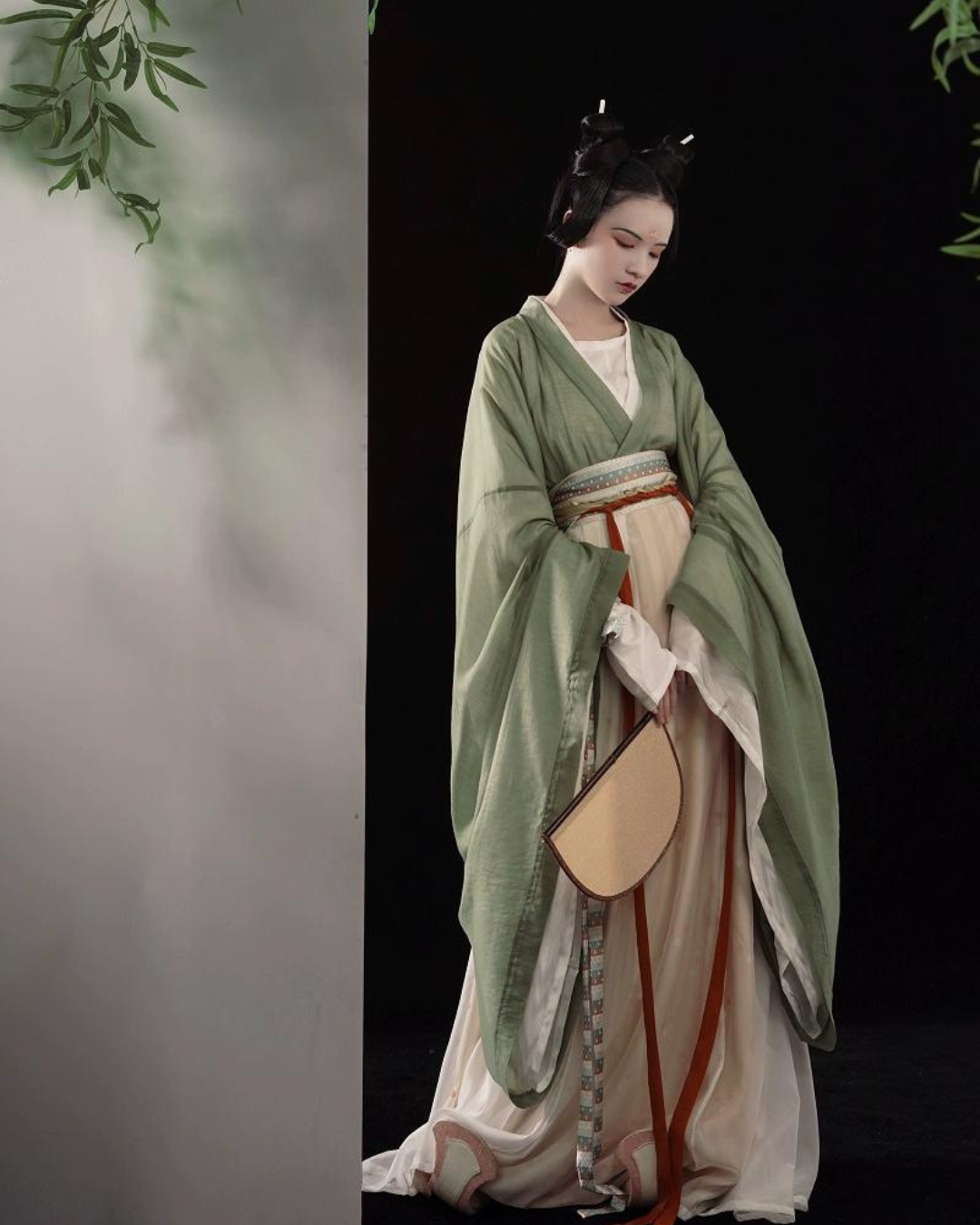 Paired with a long, decorative shawl called Pībó 披帛, Tang hanfu truly creates a goddess-like style.