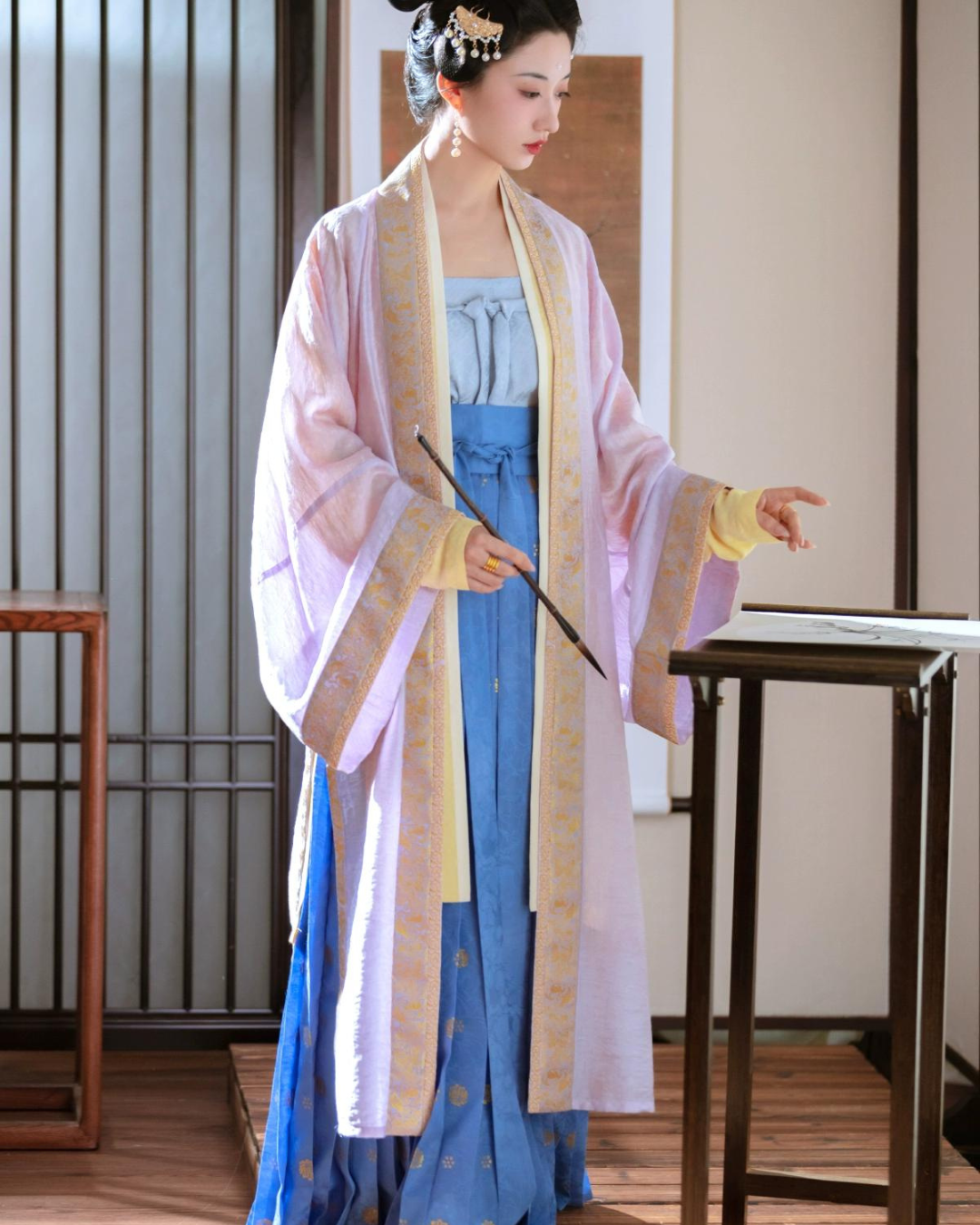 By the High to Late Tang, Qíxiōng Rúqún 齐胸襦裙, known for its chest-high silhouette, took the stage and is regarded as the hallmark of hanfu attire.