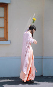 Step into a harmonious blend of history and modern fashion with the colorful Jüzi Qishui 橘子汽水 Orange Soda Changshan & Double Layered Trousers Set!