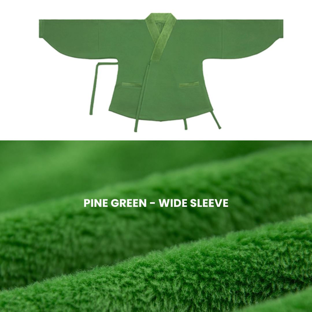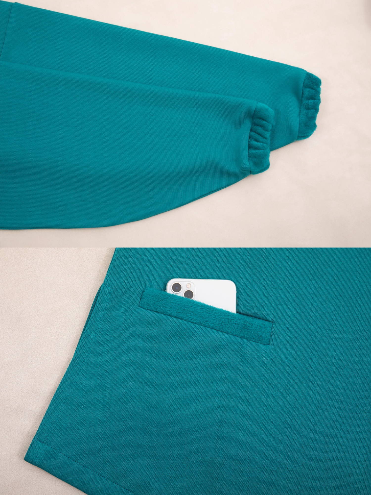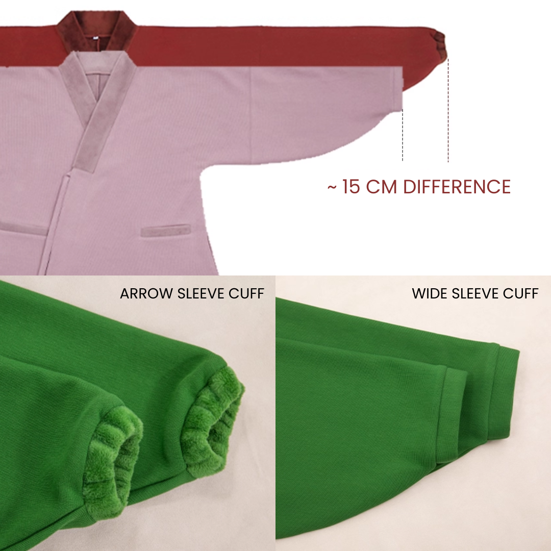 Made with a comfortable cotton blend jersey on the outside, and warm velvet fabric around the jiaoling 交领 "crossed collar" and inside. Plus, keep your hands cozy with the convenient velvet-lined pockets!