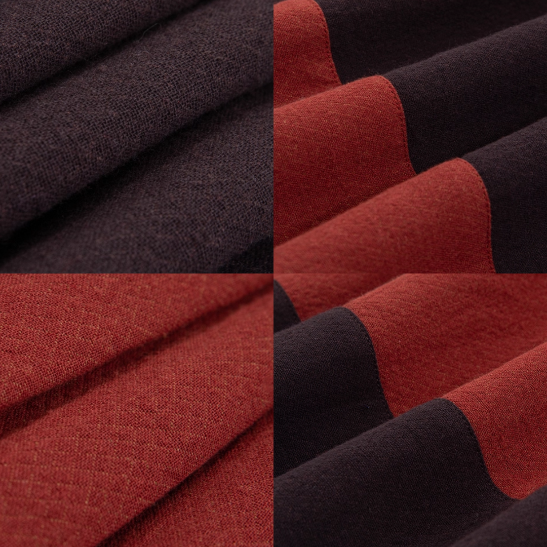 Deep ebony wood brown on one side, and a warm maroon red on the other - perfect for lovers of toasty colors.