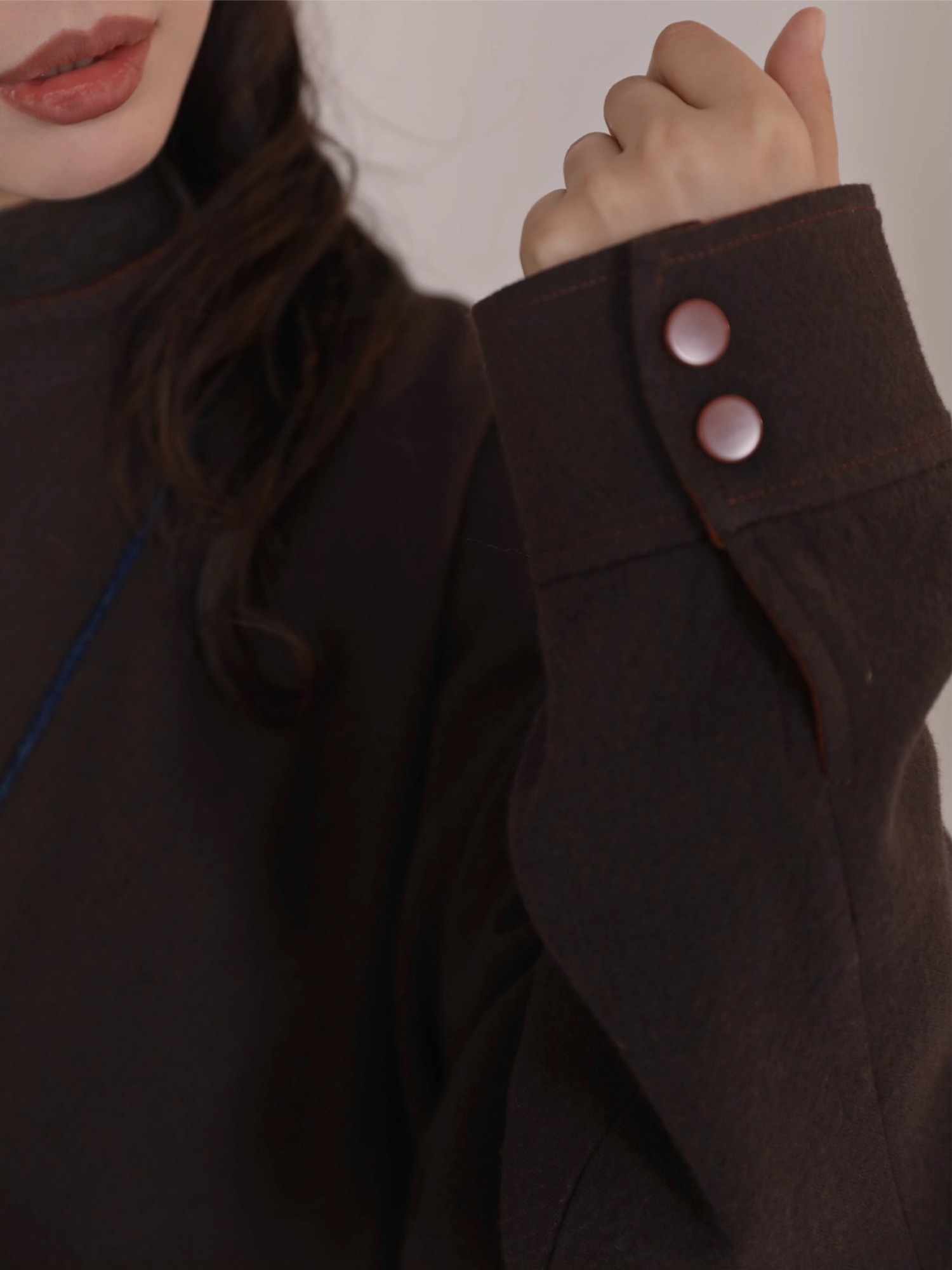 The Yuanling Ao 圆领袄 (round collar coat) is fully reversible, with spacious pockets on either side. Fitted with contrasting cuff design and accented with modern snap buttons, this spacious coat keeps you toasty without sacrificing utility.