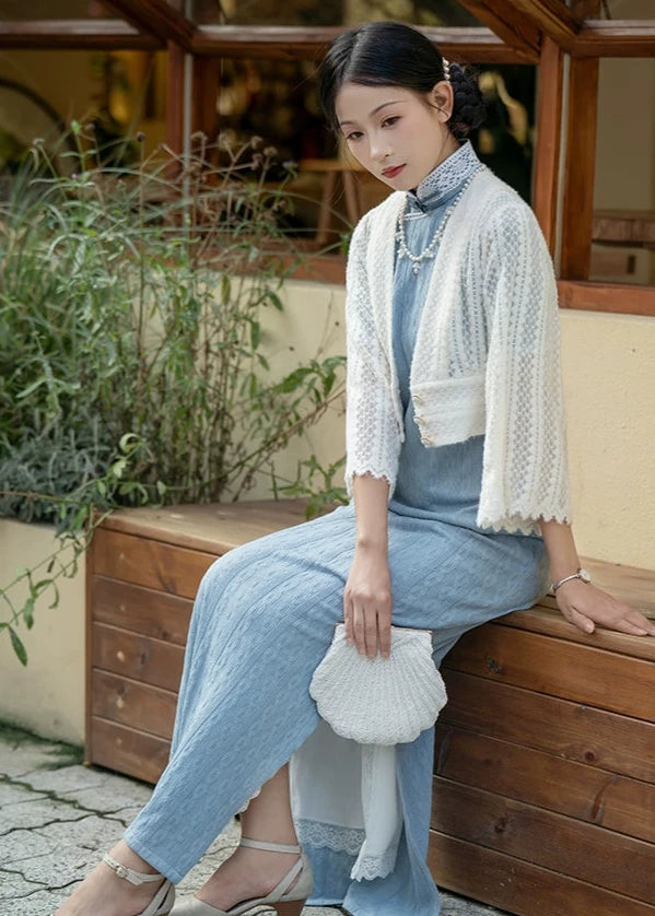 Xue Hua 雪花 Snowflake Republic of China Knitted Lace Qipao Cardigan