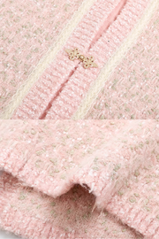 Inspired by 1960s Chanel textiles combined with Ming Dynasty construction, creating a truly unique coat. Pastel pink colors evokes a soft and romantic aura, while the texture of the knit adds a cozy and down to earth vibe.