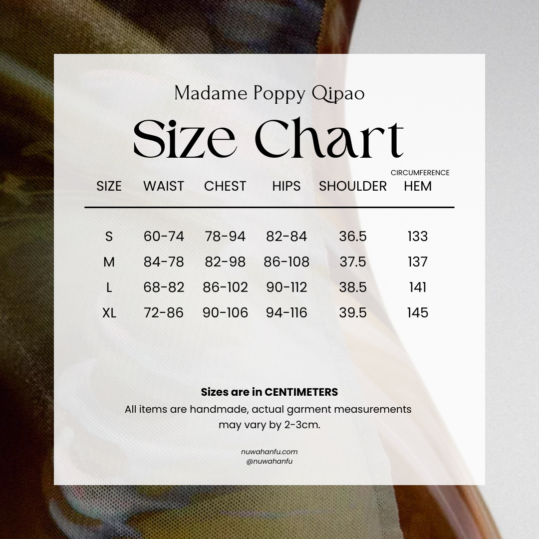 Golden highlights run throughout the print of the dress, making every step you take an ethereal dream! The Yu Meiren 虞美人 Madame Poppy Qipao is perfect for those looking to channel their inner sci-fi cheongsam goddess.