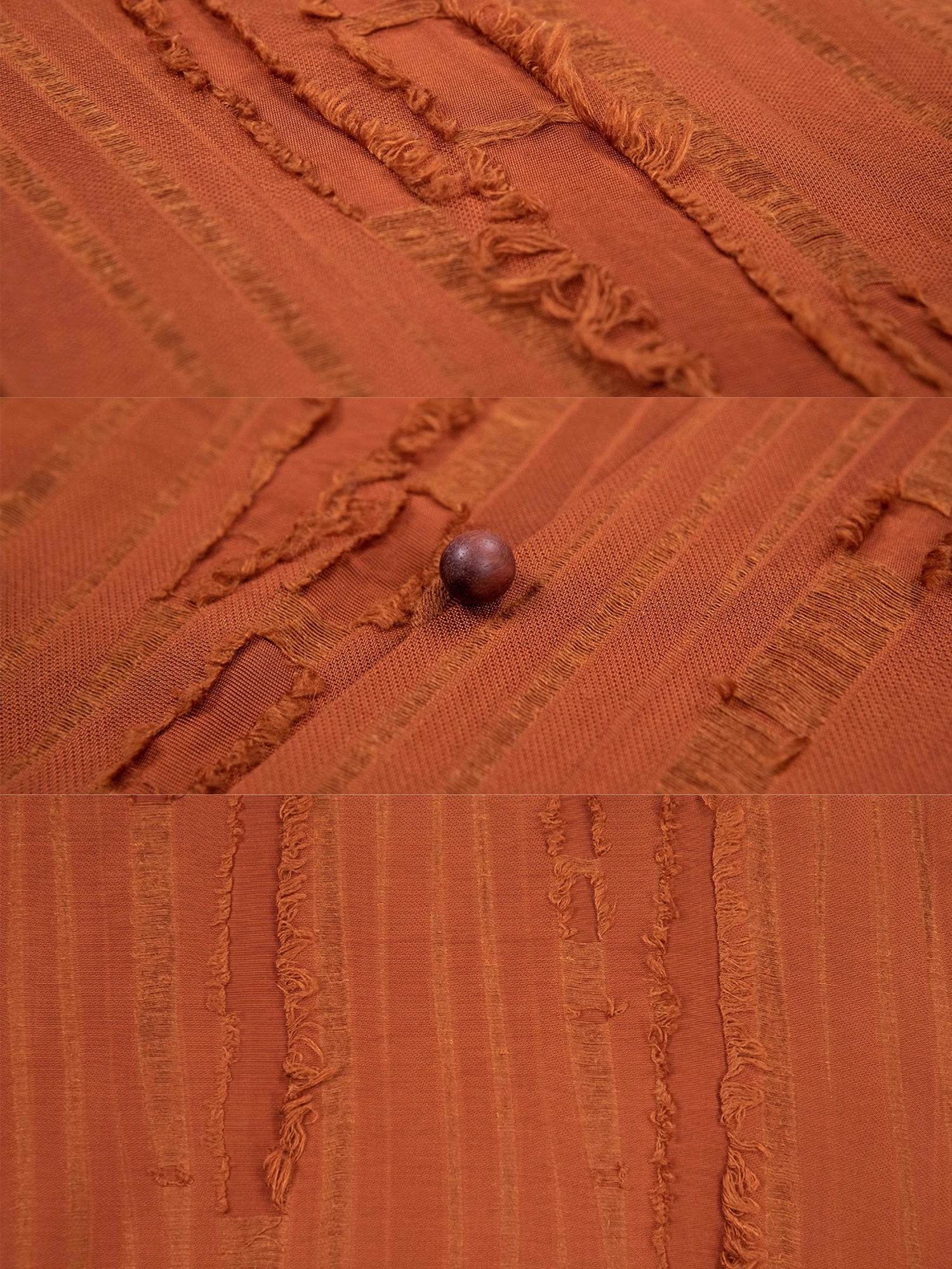 Moving on to the Quling Shan 曲领衫 (raised collar shirt), this top was the ancient turtleneck. A typical base layer for most early dynasties, updated with a bright persimmon color. Made of linen blend, this top is breathable and moisture wicking.